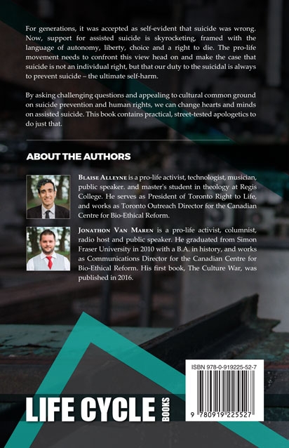 “Alleyne and Van Maren have simply, yet articulately, laid out the essential apologetics of the assisted suicide debate. A Guide to Discussing Assisted Suicide ought to be mandatory reading for all who find themselves on the front lines.”  Dr Ryan Wilson, CCFP, President of Canadian Physicians for Life