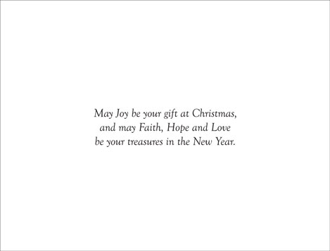 May Joy be your gift at Christmas, and may Faith, Hope and Love be your treasures in the New Year.